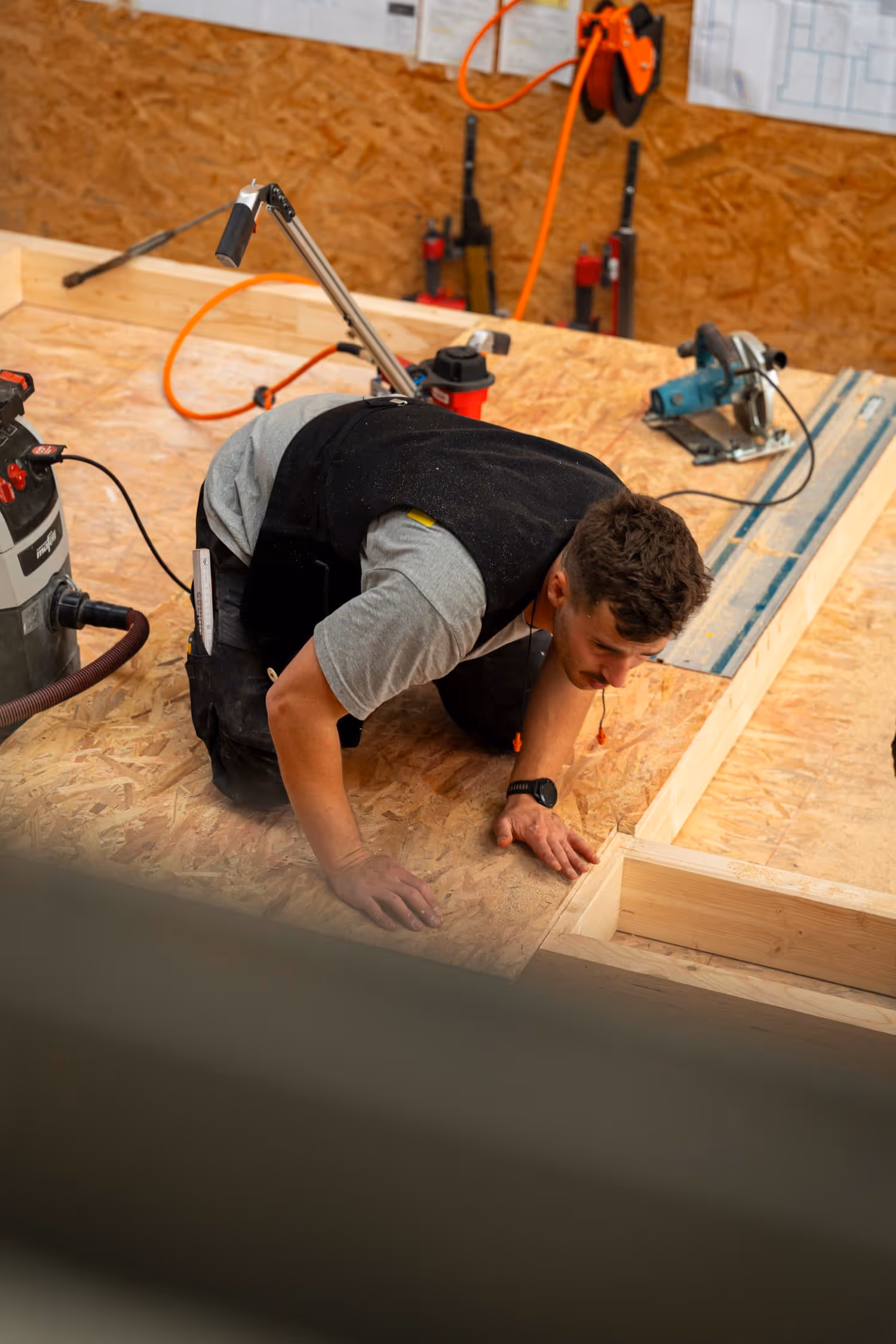 Wir fertigen Wand- und Deckenelemente in unserer Montagehalle vor – passgenau, terminsicher und montagefertig.